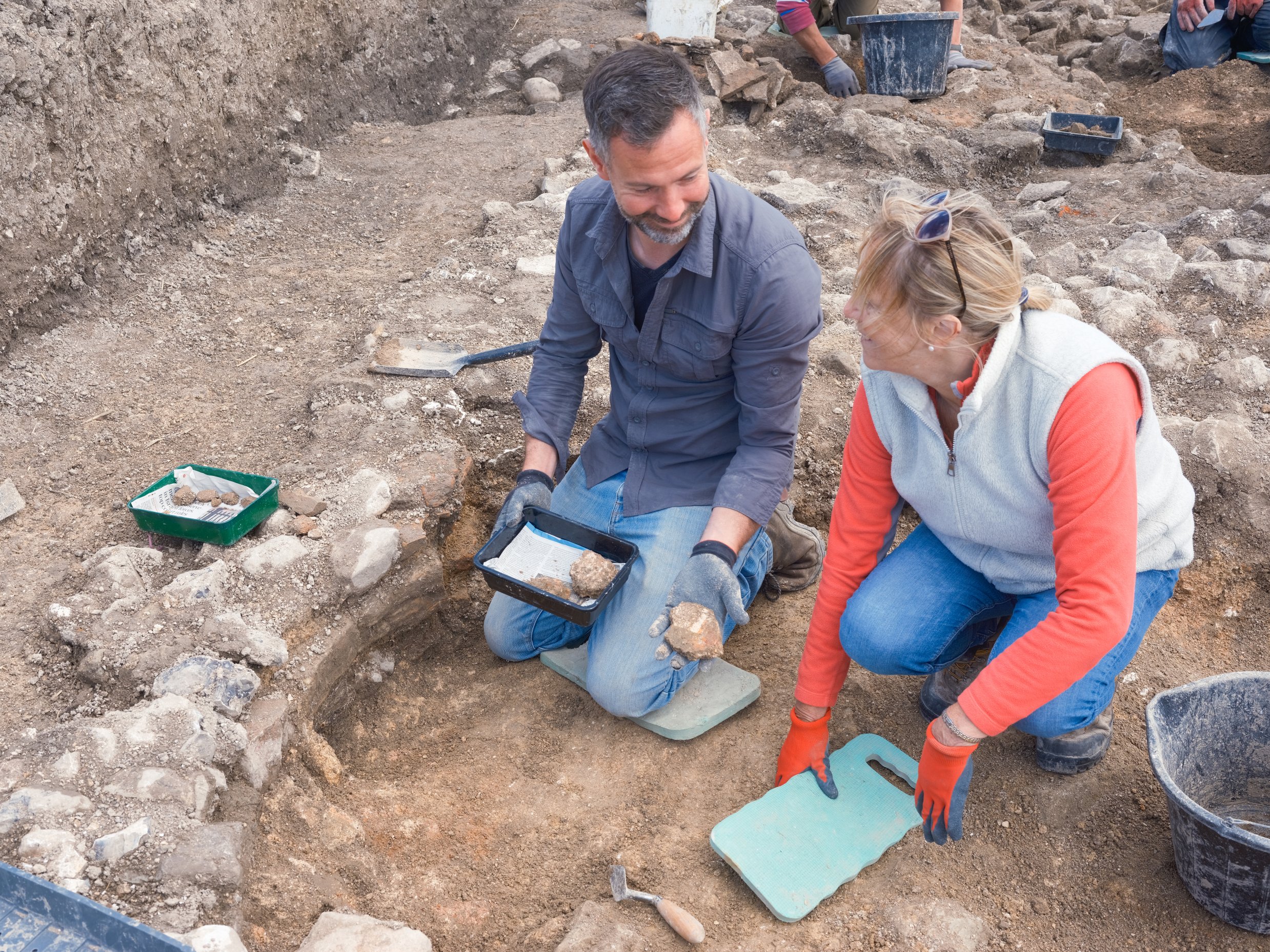 Volunteers Excavating Painted Wall Plaster